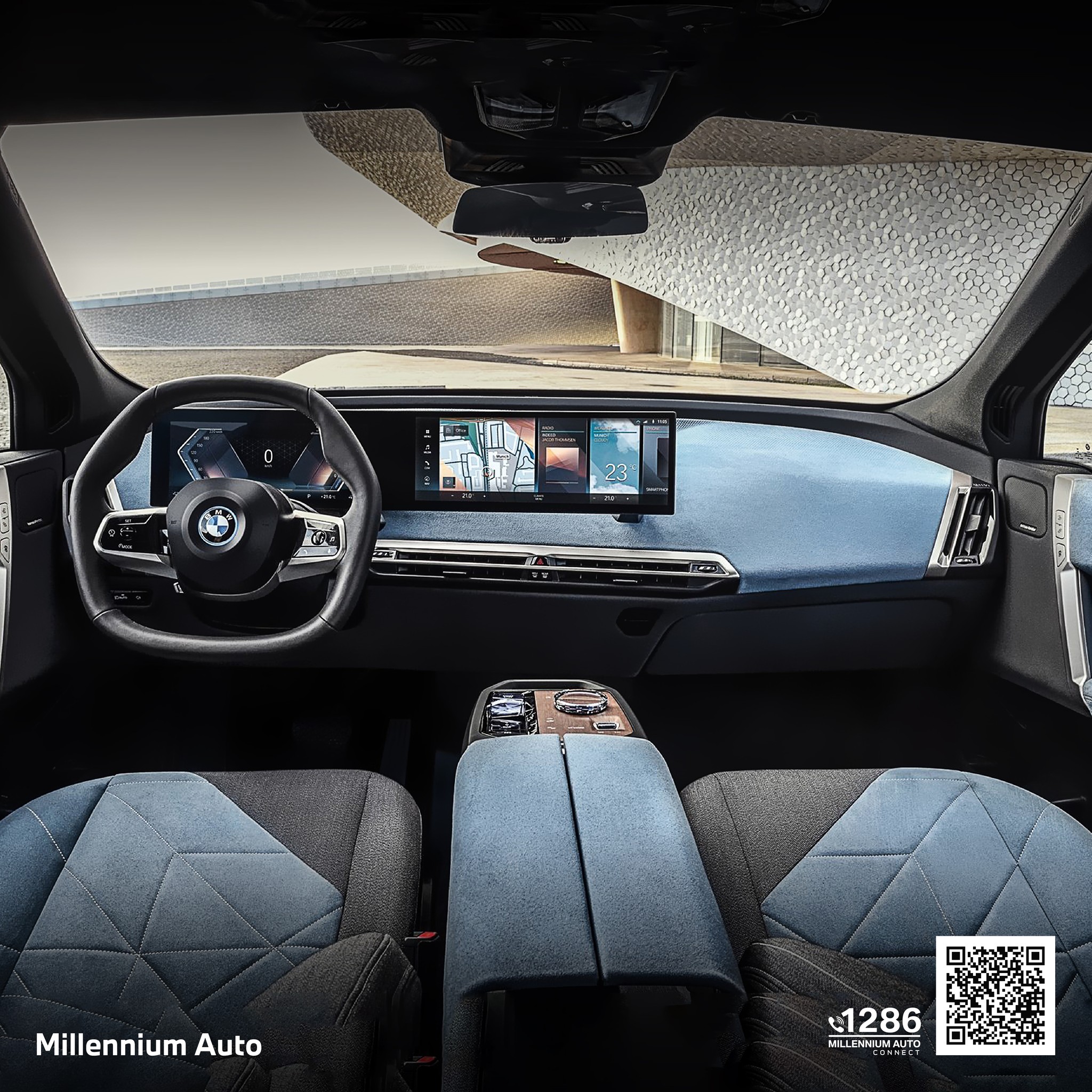 3) หน้าจอ BMW Curved Display แสดงข้อมูลขนาด 12.3 นิ้วและหน้าจอควบคุมขนาด 14.9 นิ้วในดีไซน์ไร้กรอบ และโค้งโอบล้อมไปทางคนขับ ทำให้มีความเป็นส่วนตัวและกลมกลืนไปกับส่วนอื่นๆ ภายในห้องโดยสาร