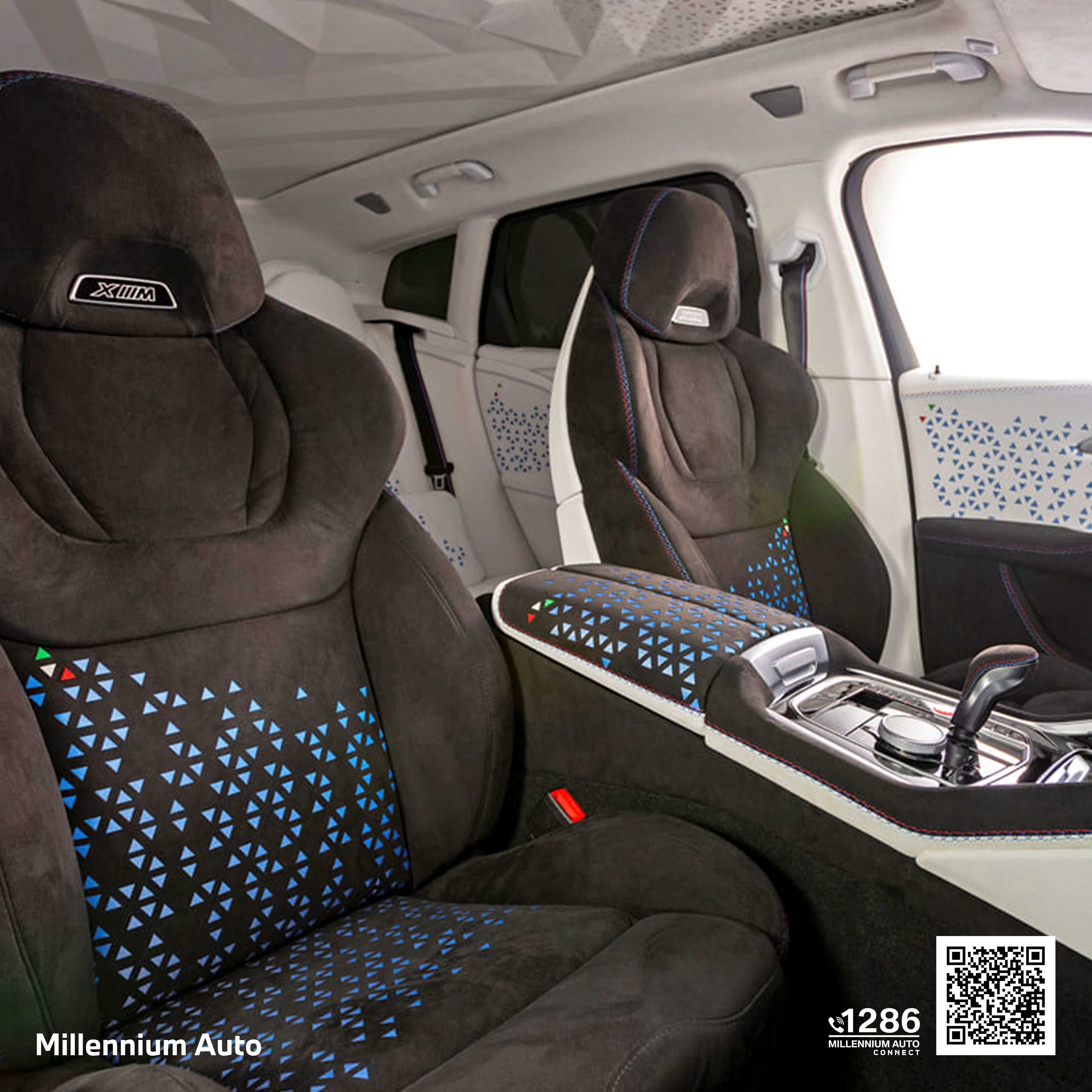การใช้ Alcantara ช่วยเพิ่มทั้งความสปอร์ตและความสบาย รับประกันการยึดเกาะที่ดีเยี่ยม ความสบายระดับพรีเมียม และความทนทานสูง ผสานประสบการณ์สัมผัสที่นุ่มนวลเข้ากับความสวยงามทางสายตาได้อย่างลงตัว BMW XM "Sky is the limit" คันนี้จึงเป็นการผสมผสานที่ลงตัวระหว่างความเป็นรถสปอร์ตสมรรถนะสูงและความหรูหราสำหรับการเดินทางไกล