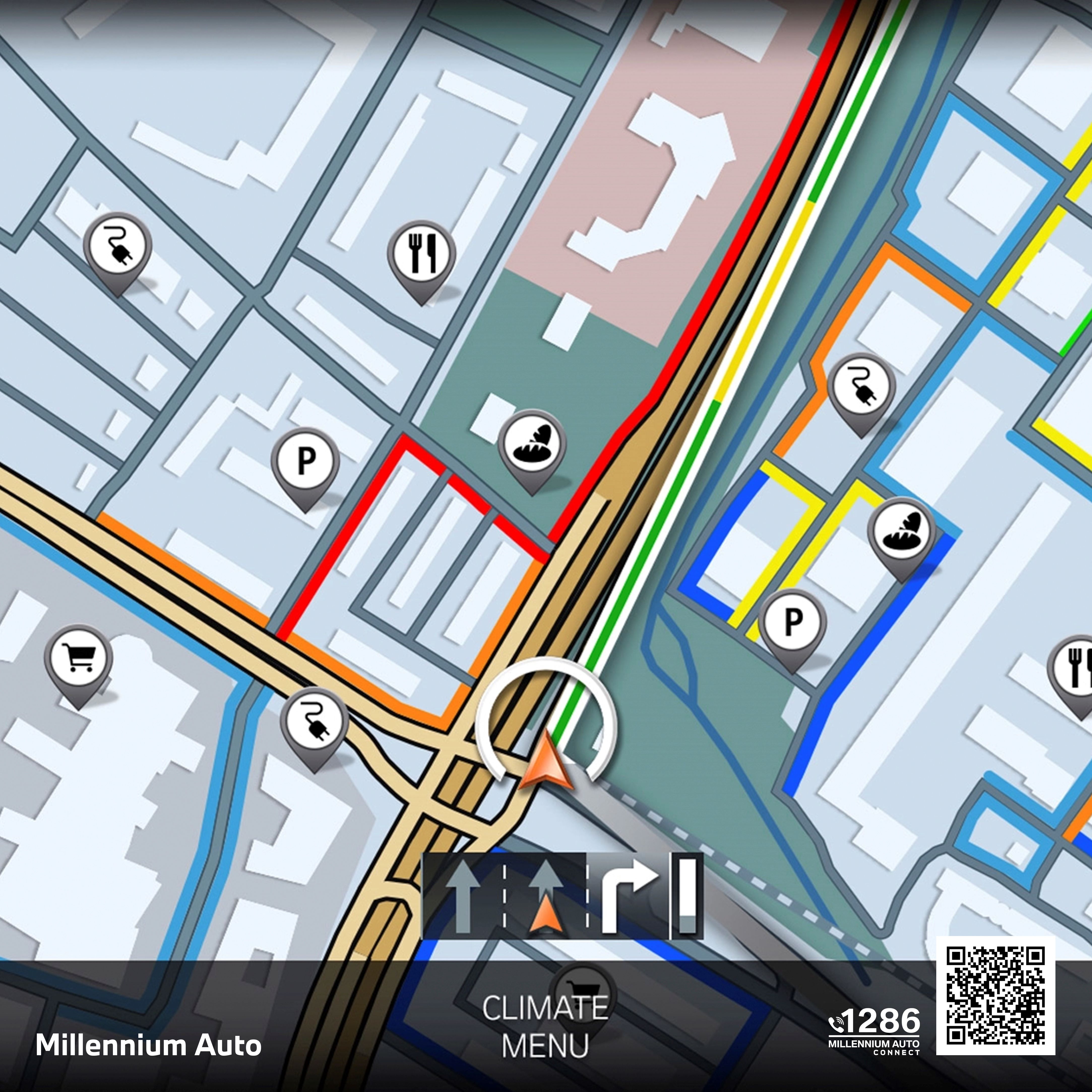 ด้วยอินเตอร์เฟซใหม่โดดเด่น รูปทรงเรขาคณิตที่สวยงามสี่เหลี่ยมมองง่าย สบายตาพื้นหลังที่เป็นสีดำที่ด้านบนและค่อยๆ สว่างขึ้นที่ด้านล่าง ช่วยให้กลมกลืนกับมุมมองจากกระจกหน้ารถในเวลากลางคืน